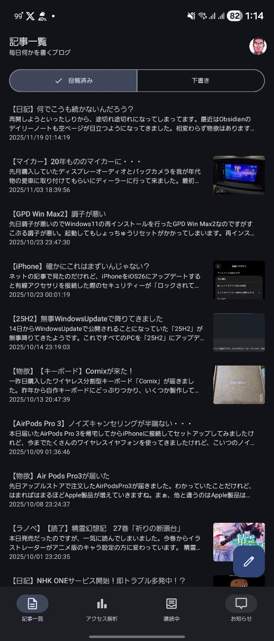 更新にはスマホのアプリを使うことが多いのですが、久しぶりに更新しなければと起動してみれば、見た目がメチャクチャ変わってしまってるやん!?なんか、全く違うアプリを使ってるみたいで落ち着かないんですけれど・・・。
